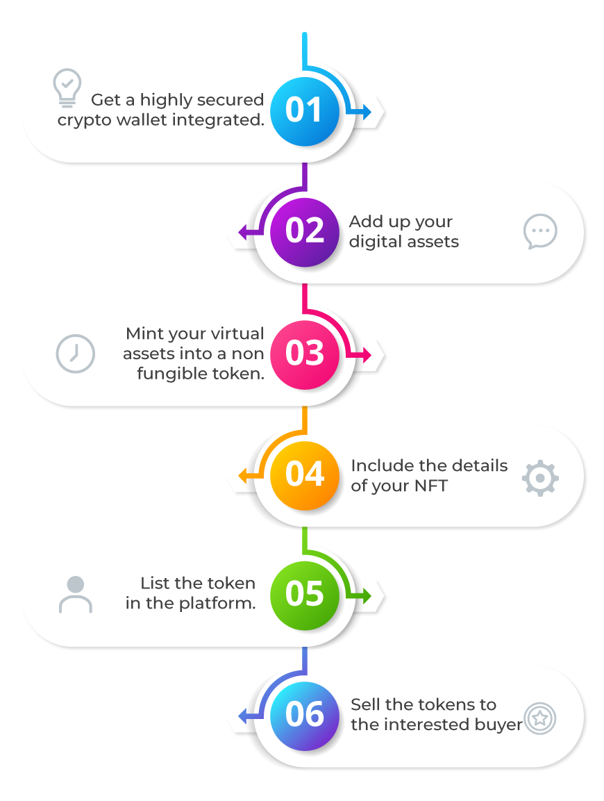 Users have to define the right audience for your platform and select the desired functionality for your NFT marketplace. Find the exact development approach and figure out the basic functionality to build NFT marketplace. Enjoy our custom marketplace development where our experts will be in touch with you in each phase of development.